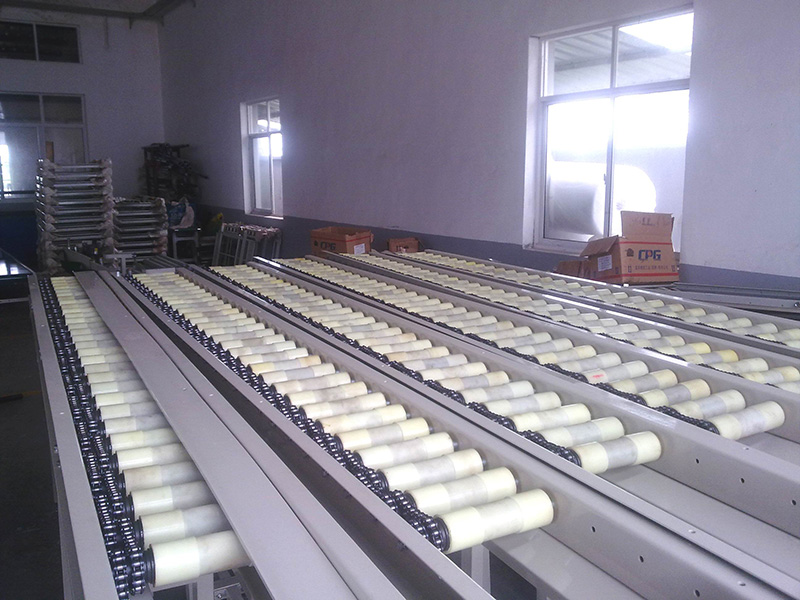 鋁合金發動機蓋缸雙鏈傳動積放式動力輥筒輸送線(輥筒采用表面包聚氨酯形式)